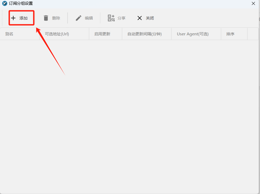 在在 【订阅分组设置】窗口中点击【添加】按钮,如下图: